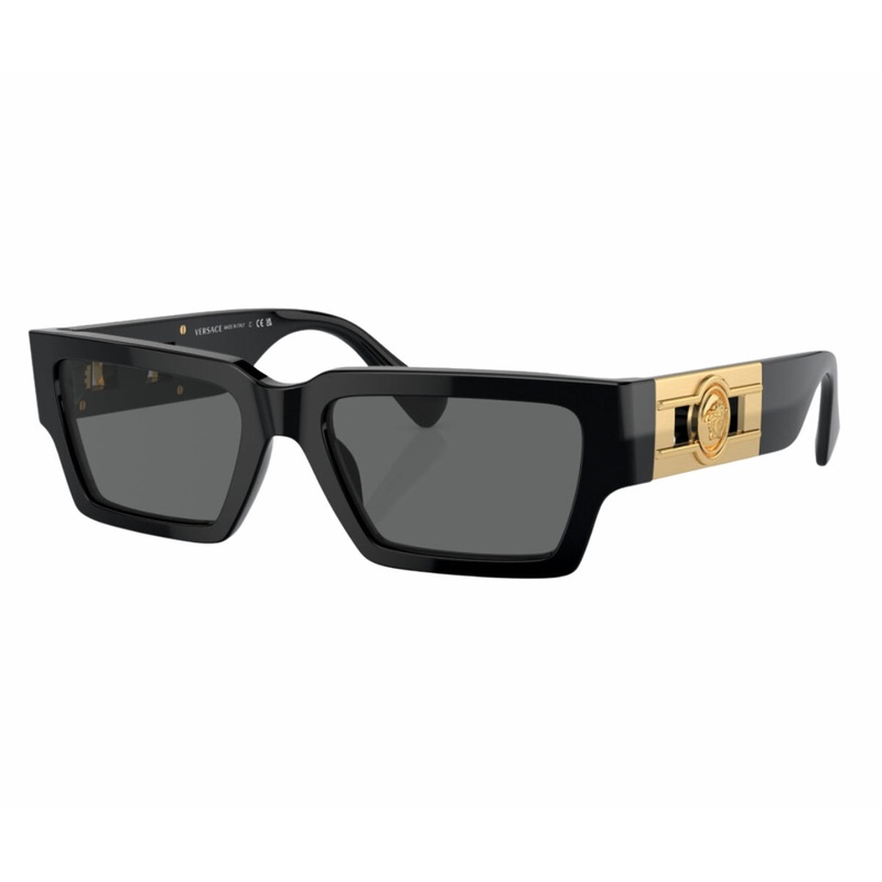 Elevate your eyewear collection with the Versace 4459 GB1/87 sunglasses, designed for those who appreciate timeless elegance. The frame comes in a sleek black color with a bold rectangle shape that adds a sharp, modern touch to any look. Made from high-quality acetate, these sunglasses are both durable and lightweight, ensuring all-day comfort. The dark grey lenses complement the classic design while providing excellent visual clarity and UV protection. Ideal for daily wear or special occasions, the Versace 4459 combines iconic style with everyday practicality. With its clean lines and refined finish, this pair is a perfect blend of fashion and function, making it an essential accessory for the contemporary trendsetter.