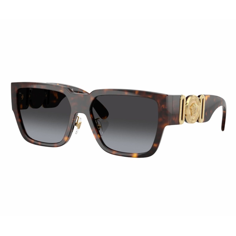 DESCRIPTION The Versace 4483D 108/8G sunglasses are a perfect fusion of luxury and timeless design. Featuring a rich Havana Brown acetate frame in a bold rectangle shape, these sunglasses offer a refined and confident look. The grey gradient lenses not onl