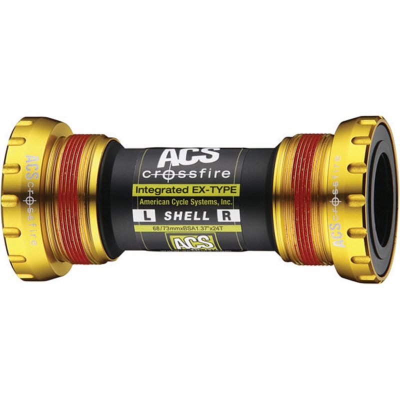 Forged and CNC-machined aluminum with precision sealed bearings for 2pc cranks and 24mm spindles BSA 1.37 inchx24T for 68/73mm shells TECH SPECSmodelCrossfirespindle interface24mmshellBSAshell ID33.6mmx24tpiwidth68/73mmcolorgold