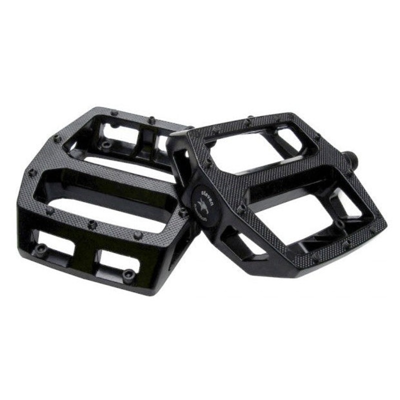 Alloy Hamilton pedals with replaceable pins and unsealed bearings.