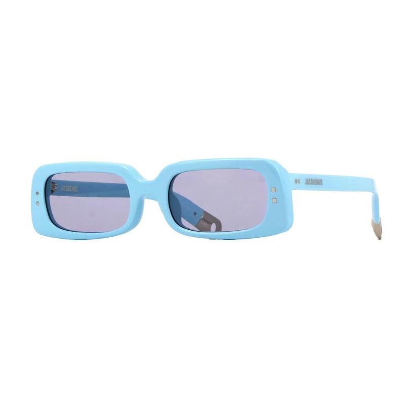 DESCRIPTION Jacquemus sunglasses model 047 C2, named AZZURO, feature a sleek and timeless design with a classic rectangular shape. The shiny blue acetate frame adds a vibrant yet refined touch, perfect for elevating any look. Fitted with solid grey lenses,