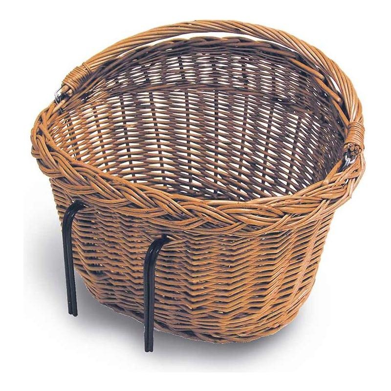 Wicker bike basket Oval dimensions Attachment system: With hooks to hang on front or rear of bike Wicker handle TECH SPECSBasket Mount TypeHooksPositionFront or Rear