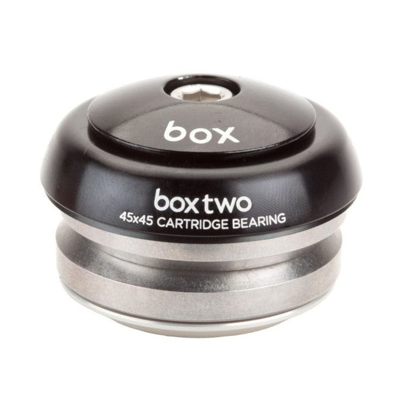 Set and forget! The Box Two Integrated headsets feature an aluminum top cap, CNC-machined bearing cover, and split crown race with super-smooth rolling, precision 45x45 bearings. Built to withstand multiple T-bars over the finish line dubs, this headset is