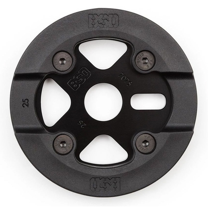 The BSD Barrier Sprocket is a CNC'ed 7075 aluminum sprocket wrapped with a tough nylon guard. Perfect for street riders that want to grind on their sprocket or just need the extra chain protection.Strong and lite 7075 aluminum constructionNylon GuardChromo