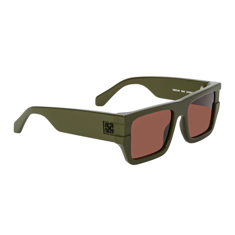 The OFF-WHITE CHESTER sunglasses, model OERI149 5664, offer a refreshing take on classic eyewear with a bold yet refined aesthetic. Featuring a rectangular frame in deep green acetate, this design stands out with its rich color and clean lines. The solid brown lenses provide reliable UV protection while complementing the frames earthy tone. With subtle OFF-WHITE branding and a structured silhouette, the CHESTER model blends timeless elegance with a modern streetwear edge. Lightweight and comfortable, these sunglasses are perfect for everyday wear or making a style statement on sunny days. Ideal for those who appreciate distinctive design with understated charm, this pair adds effortless sophistication to any look.