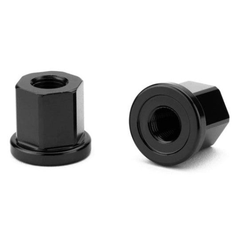 Cinema CNC 7075 axle nuts Lightweight aluminum axle nuts with a 17mm hex size. Available for 3/8 and 14mm axle sizes, sold in pairs. Size:17mm Hex Thread:3/8 (3/8 x 26T) / 14mm (M14 x P1.0) Material:7075-T6 Aluminum Weight: 2.2g