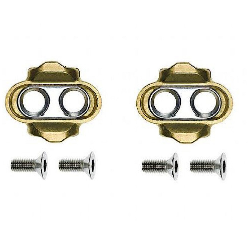 Brass replacement cleats for eggbeater, candy, smarty, and mallet pedals. 15 or 20 degree release angle. 2 hole side-to-side bolt pattern. Includes shims and mounting bolts. 6 degrees of float. 30grams per pair.