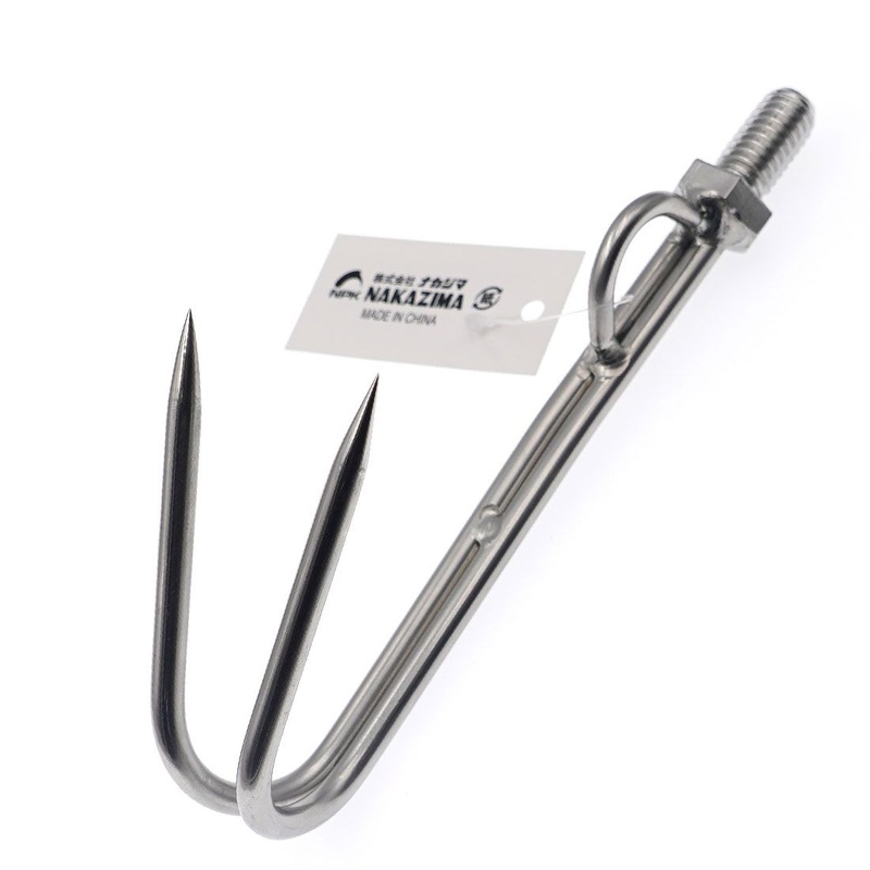Reinforced, made of stainless steel, double gaff for big fish, by Japanese company Nakazima.Reinforced, made of stainless steel, double gaff for big fish, by Japanese company Nakazima.It is equipped with an eye, on which you can tie a rope, in case you use