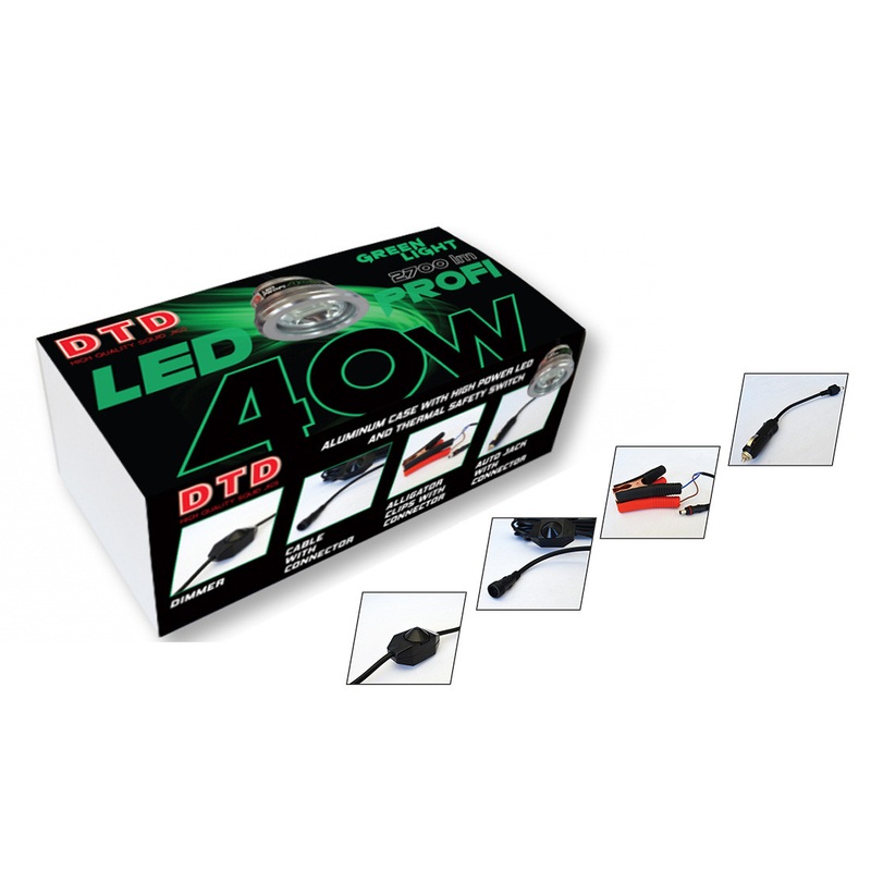 The DTD Green Led Profi lamp connects directly to the poles of the battery of your boat, or to a 12V plug and produces an outstanding 2700Lm (40W) output.
