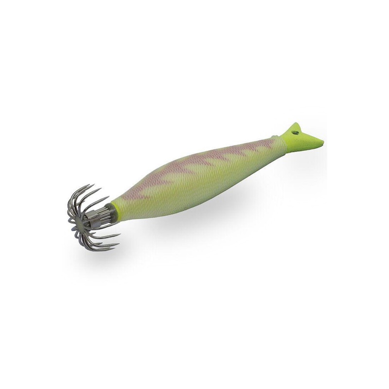 The DTD Poseidon glow is a squid jig, coated of high quality yarn, with lead body and wide angle hooks, that descents quickly to the squids strike zone.