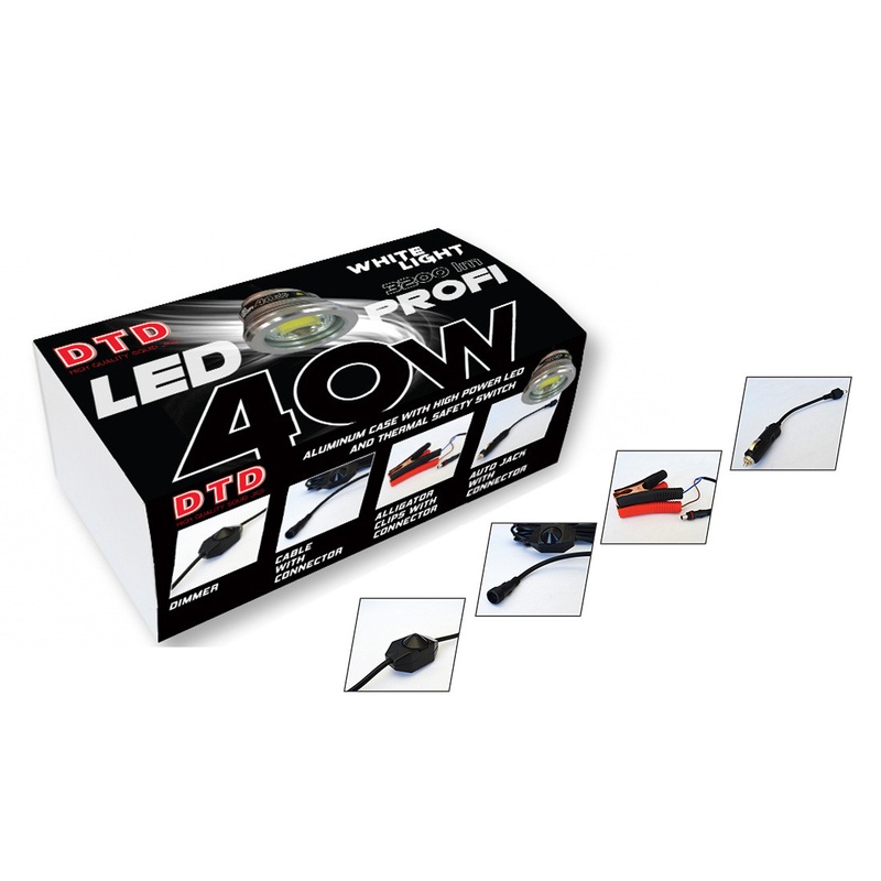 The DTD White Led Profi lamp connects directly to the poles of the battery of your boat, or to a 12V plug and produces an outstanding 3200Lm (40W) output.