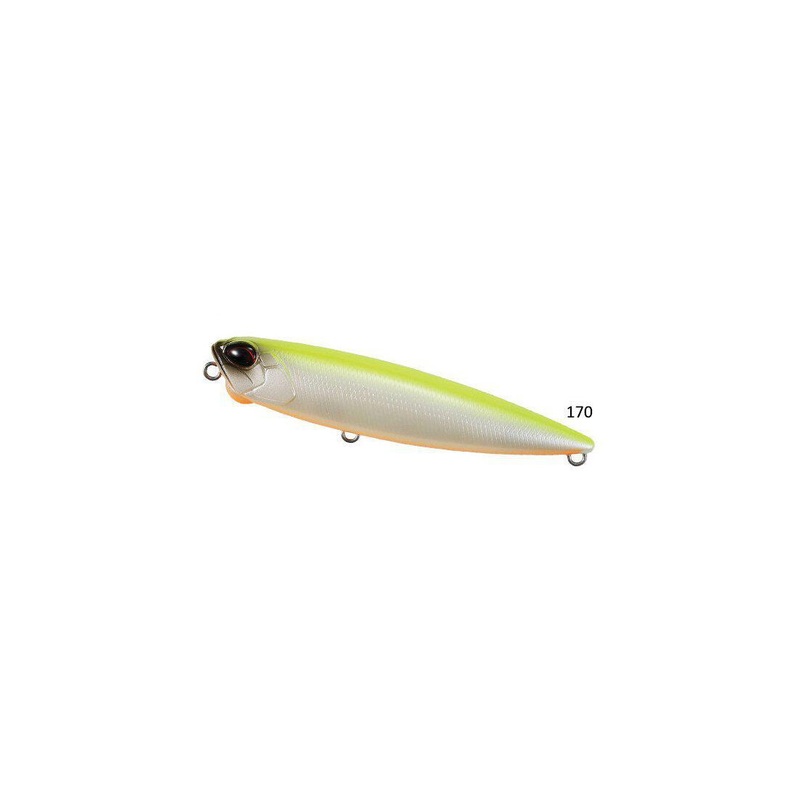 The DUO Pencil 85 is another the down-sized version, applicable to both saltwater and freshwater. This is a Pencil model with more emphasis on the bite. In addition to the original characteristics of castability, action and the sphere protruding from its face to improve the rotational performance, a smaller dog-walking action has been added to its traits. It will not only be effective in searching a vast area, but will also produce you results in high pressure fields where a tighter approach is required. With the side-to-side dog-walking action inherited from the 110, the pencil 85 will produce a tighter action compared to the 110 version.