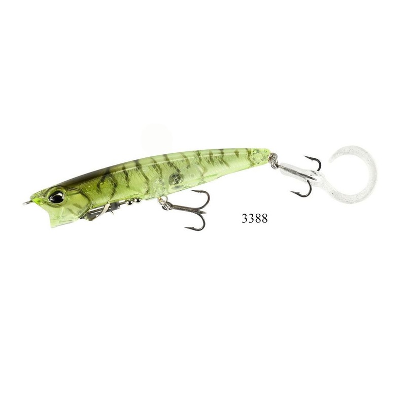 The lure is also equipped with a curly, silicone tail in the end, which gives off fine vibrations, which Bass fonds attractive. It also adds a natural movement to the lure and some resistance to the retrieve, so the angler can feel the lure. The silicone tail is detachable from the treble hook, so you can chose the setting. The packaging includes one spare tail.