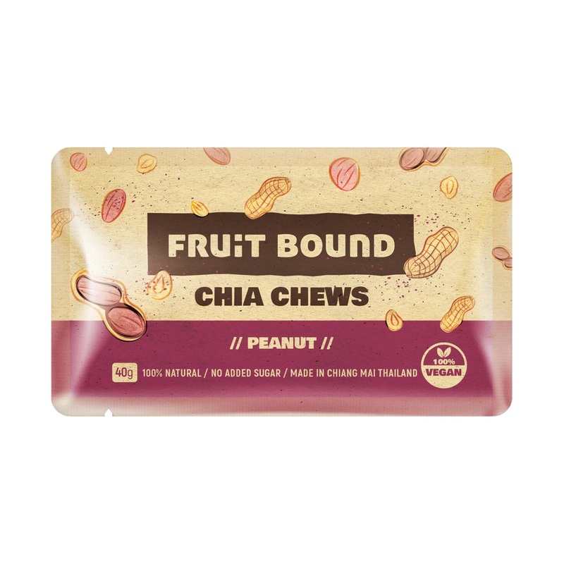 Fruit Bound Peanut Chia Chews bring the best of chewy and crunchy. The freshly roasted flavor of peanuts and the whole wheat goodness of oats in a chewy chia coated bar.