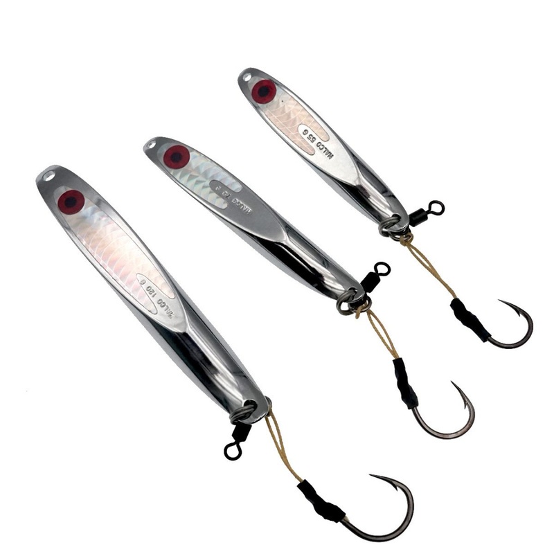 These Twisty Jigs have an incredibly enticing action and can be retrieved by aslow wobble, or a high speed splashing action. They are highly successful lures for rock fishing, beach fishing, or used offshore for a variety of gamefish.