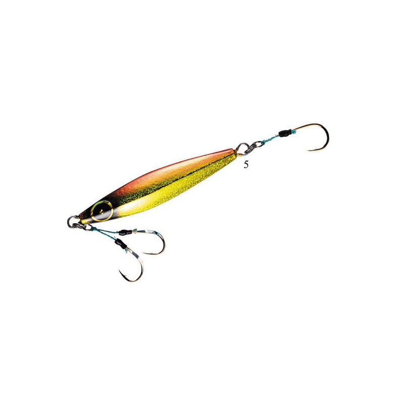 Front and rear assist hooks come as standard rigging, so they can be used immediately. Hayabusa utilised the highly appealing Holo Flash Isaki hooks on the front and the Chinu hook in the tail, all rigged on an 1 cm assist line. After casting, retrieve the jig in a subtle manner, then let itfall horizontally, producing the natural motion of a dying bait fish.