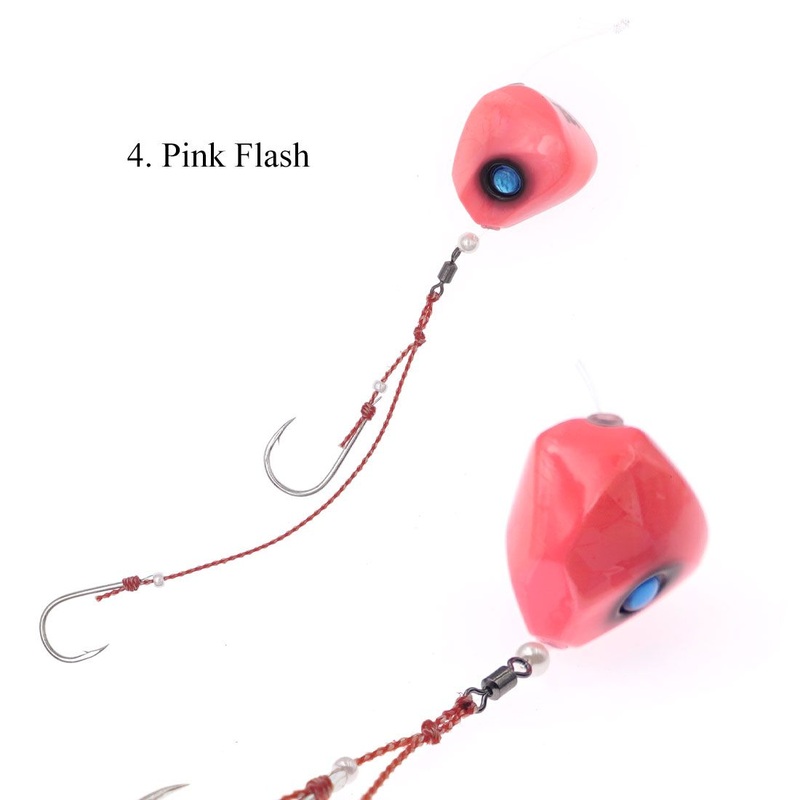 Hayabusa observed that a smooth and natural descent of a jig can be achieved, when the shape of the jig is hydrodynamic and does not meet intensive water resistance. The falling motion of the Hayabusa jigs provides no discomfort to the prey, since the head sinks first and the live bait follows. The bait appears natural and lures even weary fish. The Snapper Tenya are of Japanese origin, sliding Tenya jigs, with multiple sides and corners, that expose its volume from any angle and allow them to sink quickly to the bottom. Their 3D eyes and impressive colors will certainly make an impact.