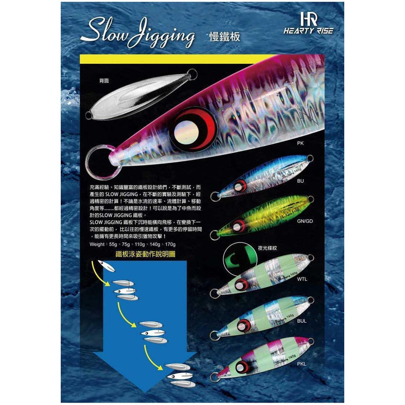 After continuous testing and precision fine tuning accurate calculating by a group of experienced jig designers, the Slow Jigging jig eventually reached circulation, by Taiwanese company Hearty Rise.After continuous testing and precision fine tuning by a g