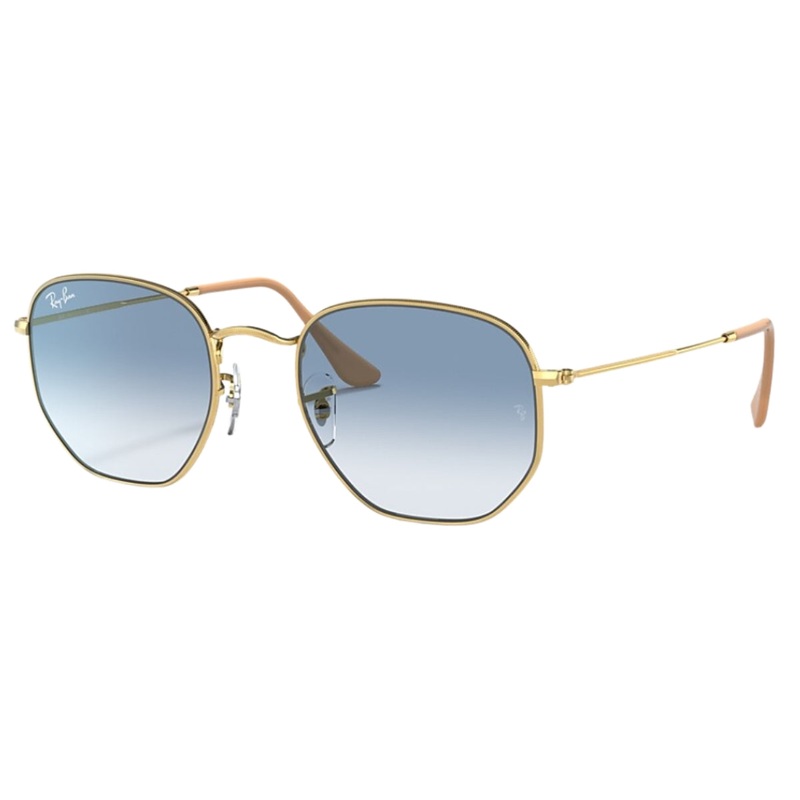 The Ray-Ban 3548 001/3F Hexagonal sunglasses offer a fresh take on classic eyewear with a distinctive geometric design. Featuring a sleek gold metal frame, these sunglasses blend vintage elegance with a modern, edgy appeal. The unique hexagonal shape adds character, making them a stylish statement piece for any occasion. The light blue gradient lenses provide UV protection while offering a soft, sophisticated color transition for a trendy yet timeless look. Crafted with precision for durability and comfort, these sunglasses are lightweight and perfect for everyday wear. Whether you’re exploring the city or enjoying a day out, the Ray-Ban Hexagonal sunglasses bring effortless style and iconic craftsmanship to your eyewear collection.