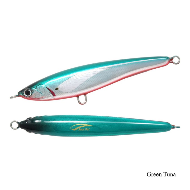 It is the perfect bait for fishing Tuna, Bonitos, Bluefish and False Albacore when feeding frenzy, but can also be used from the shore, for Leerfish and Bluefish. This Jack Fin stickbait reproduces and attractive swimming motion, can be retrieved with both long, or short twitches and its wobbling action can attract fish, even during the fall.