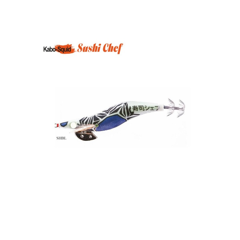 The Jatsui Kabo Killer Sushi Chef is a visual and action jig, its unique shrimp pattern design and smooth body has been designed to attract a squid by sight and action. Its smooth body design allows the lure to dart and slide effortlessly through the water, more realistic than any other squid jig.