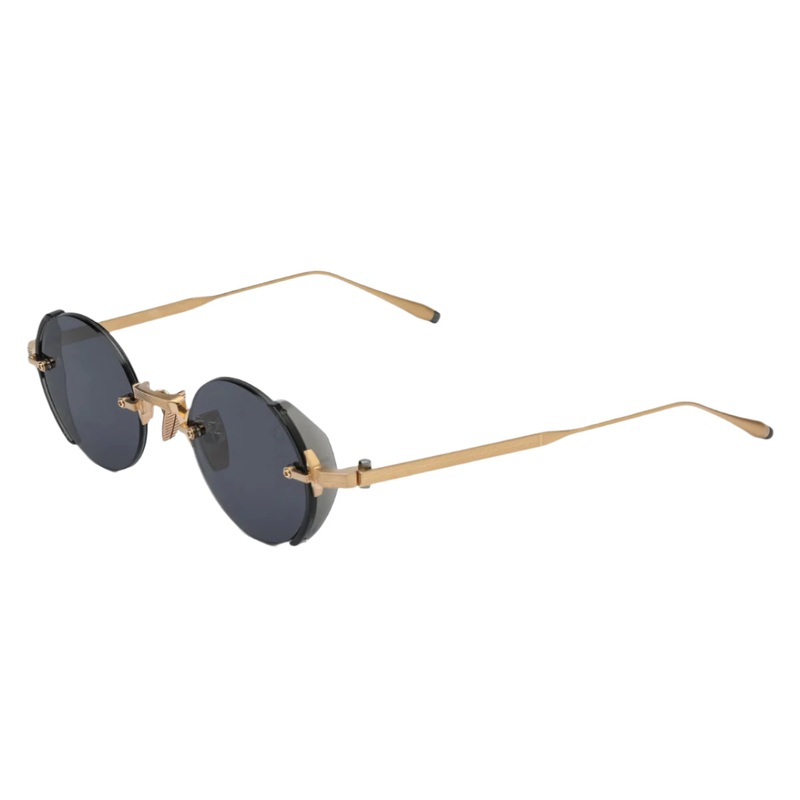 The Akoni AKS-519A Jupiter sunglasses exude timeless luxury with their exquisite craftsmanship and refined design. Featuring a brushed 12k gold frame, this round silhouette offers a sophisticated yet modern aesthetic. Crafted from premium Japanese titanium and acetate, these sunglasses provide a perfect blend of durability and lightweight comfort. The solid black lenses offer essential UV protection, ensuring optimal eye safety while enhancing the overall sleek look. Designed for those who appreciate exclusivity and precision, the Jupiter model is a statement piece that reflects Akonis dedication to superior quality and innovation. Whether for everyday wear or special occasions, these sunglasses elevate any style with their elegant, high-end appeal.