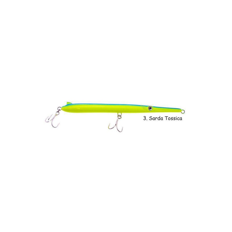 Laboratorio Aguglia EVO is a Needle lure that revolutionizes the world of spinning, as it is made entirely of ABS and equipped with a mobile weights system internaly that produces a rattling sound and assists the lure to achieve maximum casting distance. The weights also enable the lure to have a more vivid movement underwater, compared to wooden needle fish.