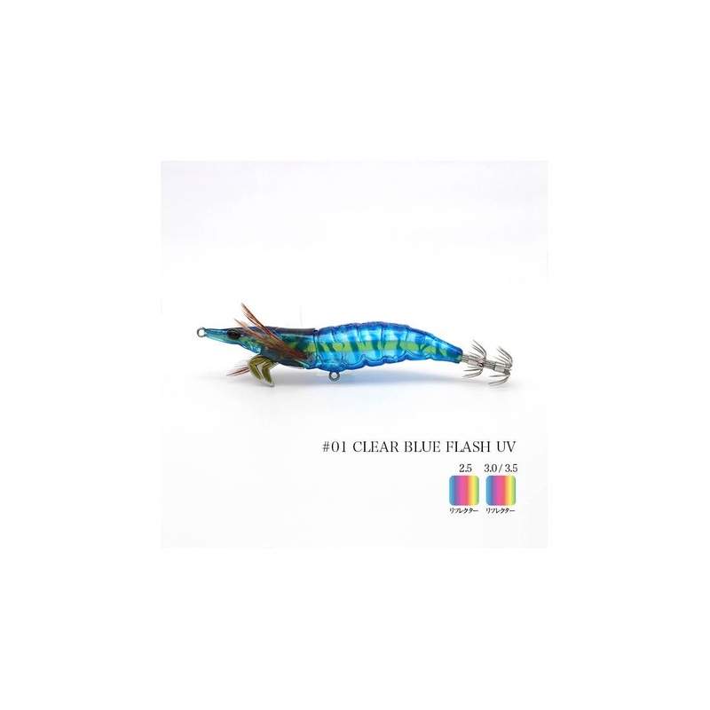 On the outside, the Little Jack OnLiest Slow Squid have a special, embossed coating, which creates the same sensation as the shell of the shrimp. The eyes are realistic and feathers have been placed on each side, for better balance. In addition, the external sinker on the front of the lure, has been deliberately designed to resemble the front legs of the shrimp. The external sinker was designed with various functionalities in mind, such as the overall center of gravity to facilitate casting distance, the achievement of the ideal sinking angle and the resistance to snagging when it lands on the bottom, all of which are designed to look good and give the target no sense of discomfort.