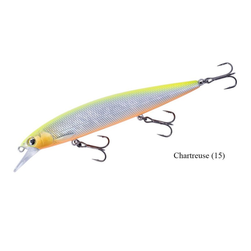 | 11 cm | 16 gr | Suspending | 0 ~ 1 m | Blue Back Silver (1), Green Back Silver (2), Yellow Cheek Pearl White (4), Ayu (6), Oikawa (11), Chartreuse (12), Holo Crown (13), Holo Tennesee (14), Ghost Wakasagi (15), Sexy Shad (16), Ghost Tennesee (17), Black Sapphire (21) |