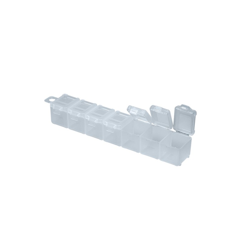 The Tai Rubber Head Case has 6 or 7 slots, separate from each other. It takes up little space in our tackle box and is a handy accessory for fans of fishing techniques such as Tenya, Tai Rubber, etc. It allows you to change jigs easily and quickly.