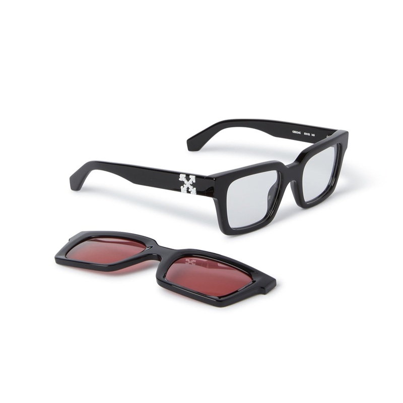 DESCRIPTION The OFF-WHITE OERI14C 1025 CLIP ON sunglasses feature a clean and classic square shape, crafted from premium black acetate for a bold and refined look. Designed with clear lenses, this model offers a minimalist aesthetic that blends effortlessl