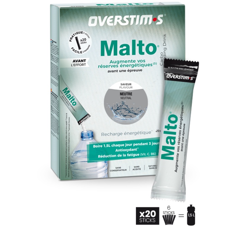 Now available as sticks, take advantage of the efficient energy of Antioxidant Maltowherever you are. Light, easy to carry and insensitive to humidity, the sticks are practical and fast to dilute. In some minutes, they permit to prepare your energy stock Antioxidant Malto in your 1.5L bottle.