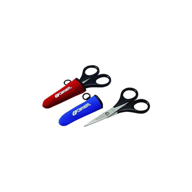 The Owner Braided Line scissors are made from stainless steel, have durable high-impact handles, and include a handy soft padded sheath with attachment loop.