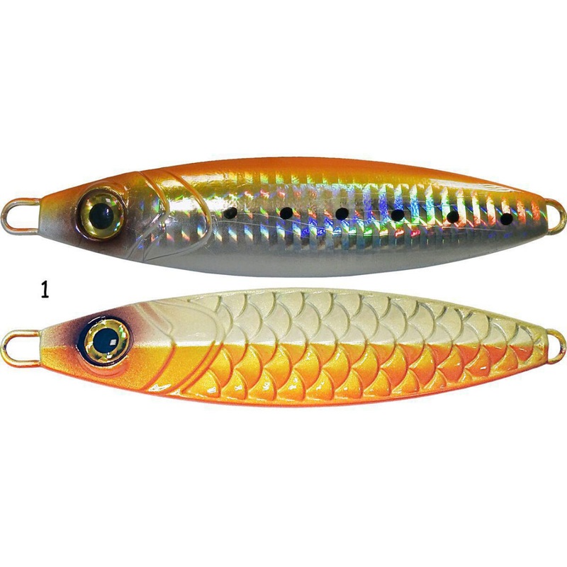 They have a metal body, with a vivid hologram effect for realistic simulation and 3Deyes. One side in each jig is smooth, luminous, with intensive colors, that reflect all available light, creating a flickering effect during their descent and retrieve. The second side has a rough finishing, like real scale that cause micro-vibrations, like a real fish and UV colors that complete a strong visual effect.