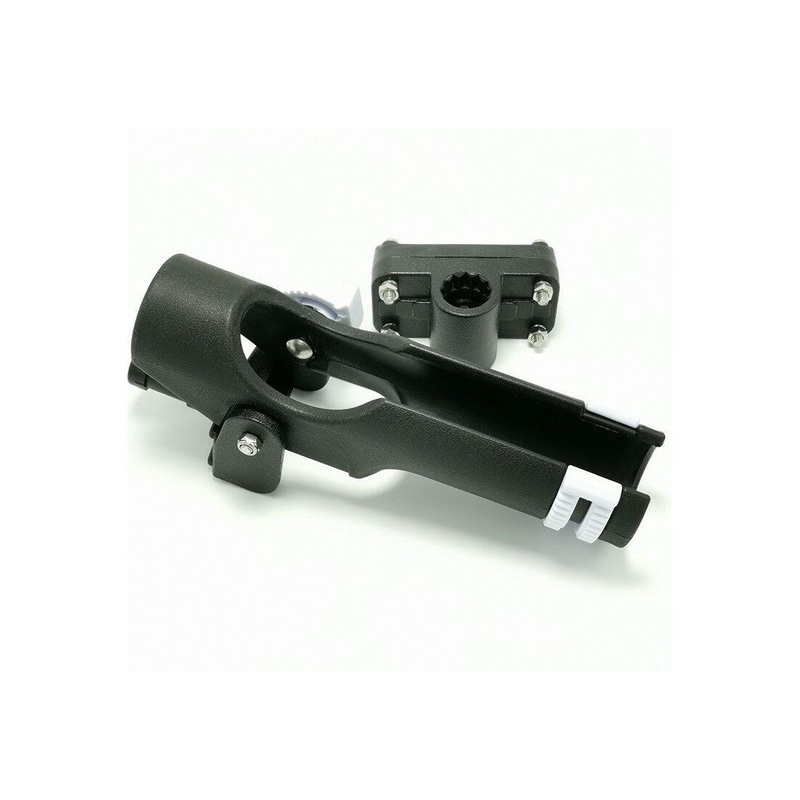 Multi-Positional, rail mounting rod holder, made of high-impact injection molded co-polymer plastic, with a black finish.Multi-Positional, rail mounting rod holder, made of high-impact injection molded co-polymer plastic, with a black finish.The robustly c