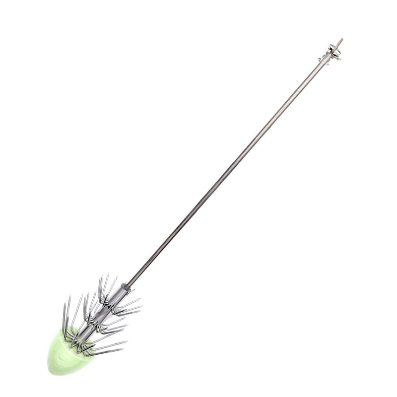 Stainless steel shaft, short fin jig, with fluorescent sinker and triple rows of hooks.