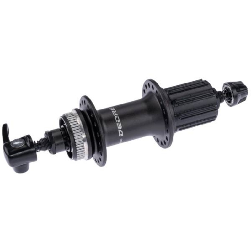 The Shimano Deore FH-M5100 rear hub is designed for mountain bikes and offers reliable performance with smooth rotation and high durability. This hub is compatible with microspline cassettes and is ideal for intensive off-road use thanks to the strong seals and efficient bearings.