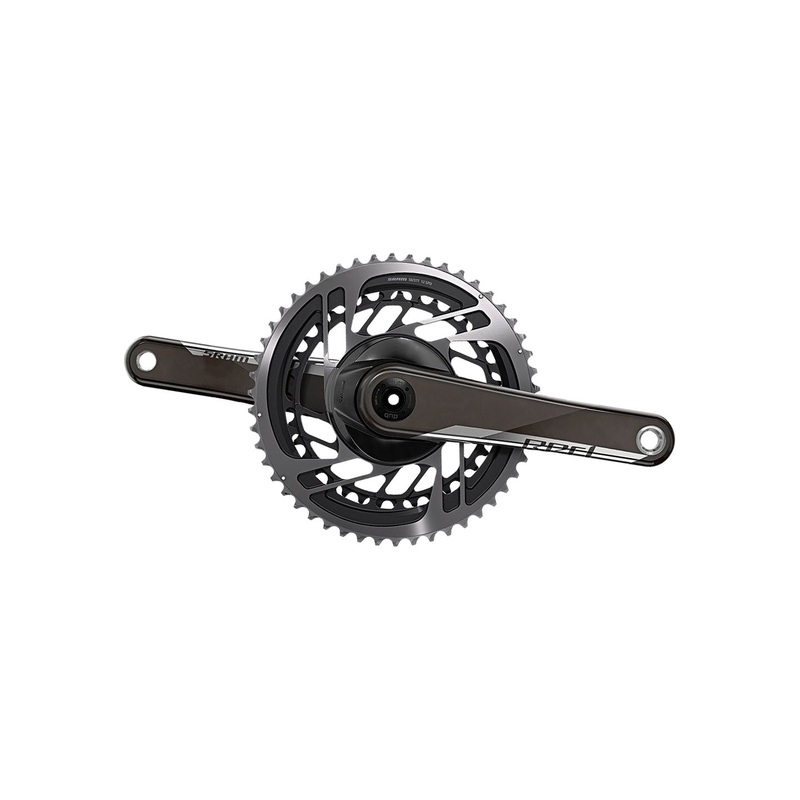SRAM RED AXS Crankset – 175mm 12-Speed 46/33t Direct Mount DUB Spindle Interface Natural Carbon D1. The SRAM RED AXS crankset leverages a pivotal design innovation: smaller chainrings and a wider cassette range. In order to offer exceptional cadence and efficiency the range has been moved from the front of the drivetrain to the back creating a consistent 13-tooth gap across all variants of chainring duos. The crankset is designed specifically for electronic shifting and can be upgraded to a power meter.