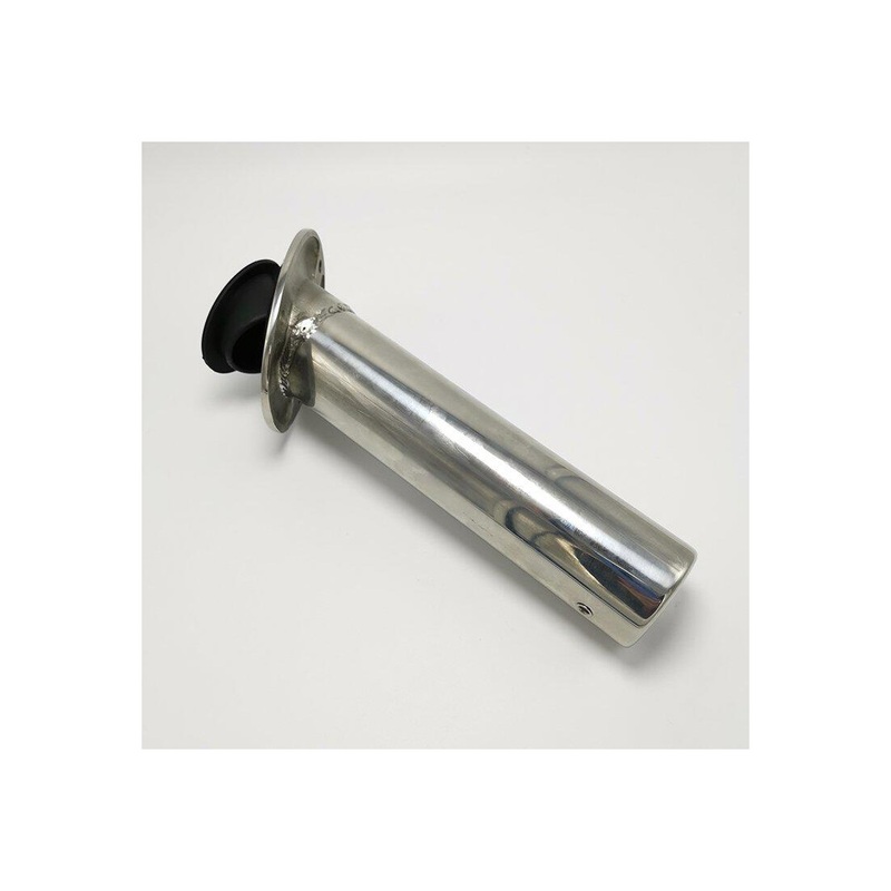 Flush-mount, in-gunwale, 316L stainless steel rod holder features an extra large, fully-welded, low profile cap.Flush-mount, in-gunwale, 316L stainless steel rod holder features an extra large, fully-welded, low profile cap that will resist breakage and en