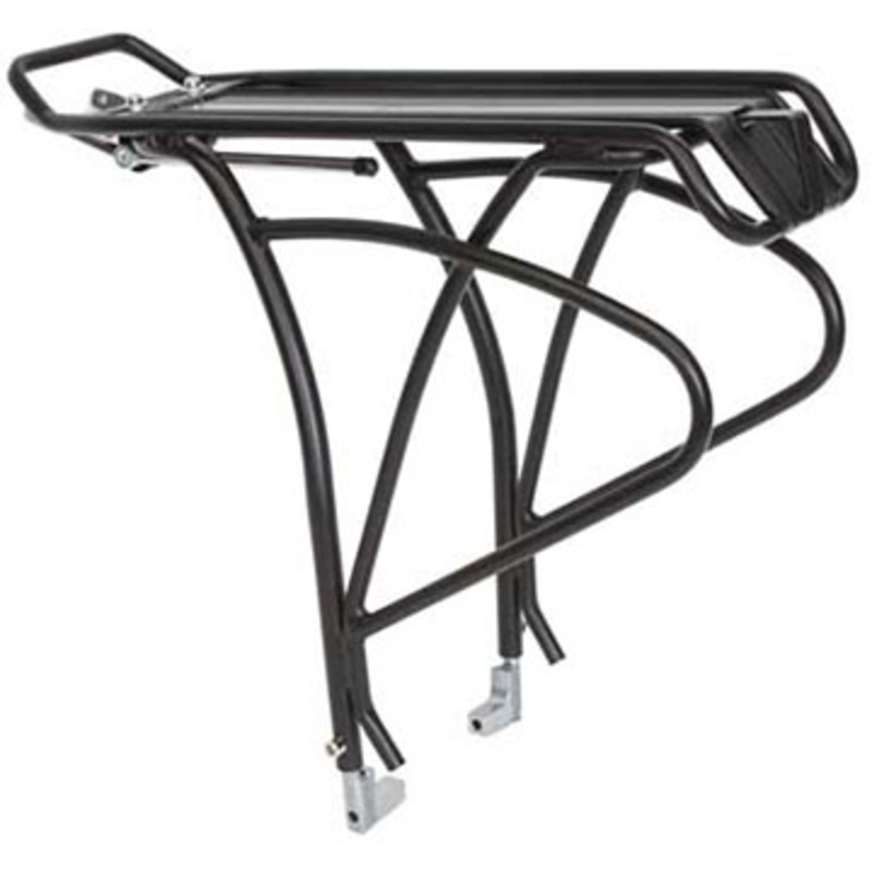 Sunlite’s Gold Tec Disc Rack fits almost any disc brake-equipped bike with wheel sizes of 26-inch, 27-inch, and 700c. Made from lightweight tubular aluminum, the Disc Rack is durable enough for daily commutes and light enough for long tours. The top deck has a capacity of up to 50 pounds and side struts support rear panniers.
