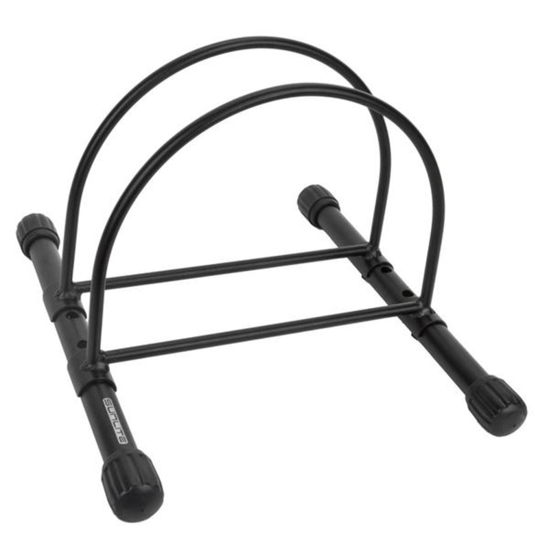 Steel parking stand with rubber feet Fits 26″ to 29″ (adjustable) Will fit up to a 4.0″ tire Black
