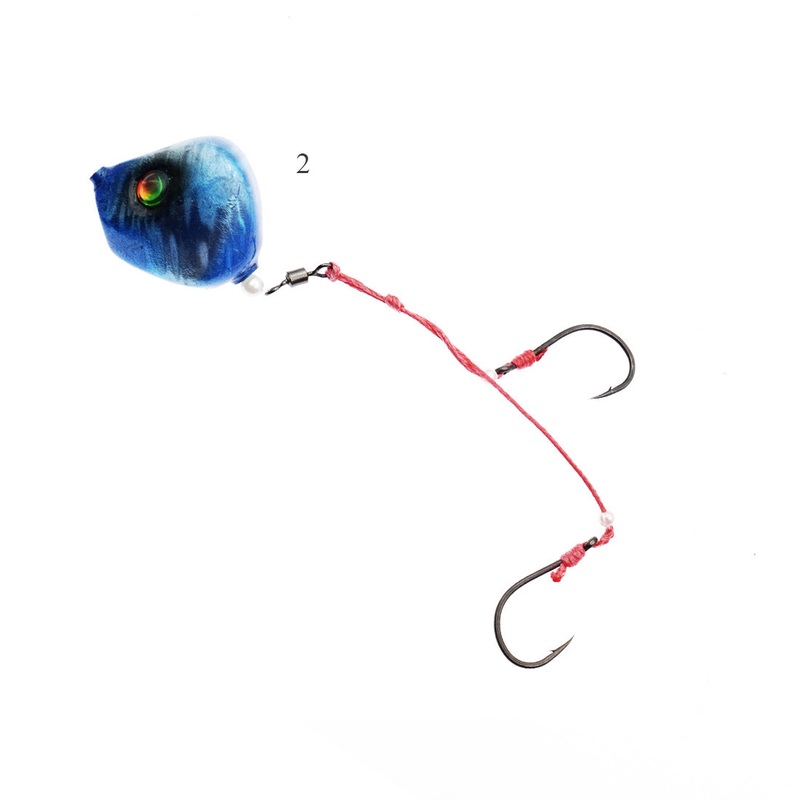 They have a non-proportional shape that allows them to sink quickly to the bottom. Their 3D eyes, striking colors and natural shape will certainly make an impact. They imitate an injured cephalopod, unable to move quickly and run away from predators.