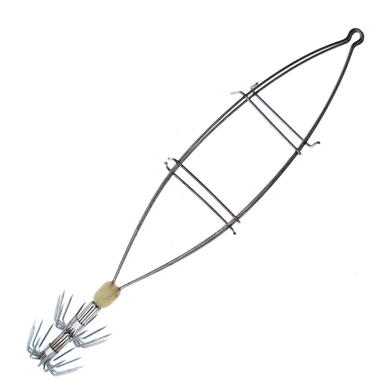 Squid jig for fresh bait.Hand made Squid lure for fresh bait. Allows you to lock the fish bait easily.Includes patented special squid hooks.Manufactured by the Greek Company Technofish.Code:1340Length: 16 cm