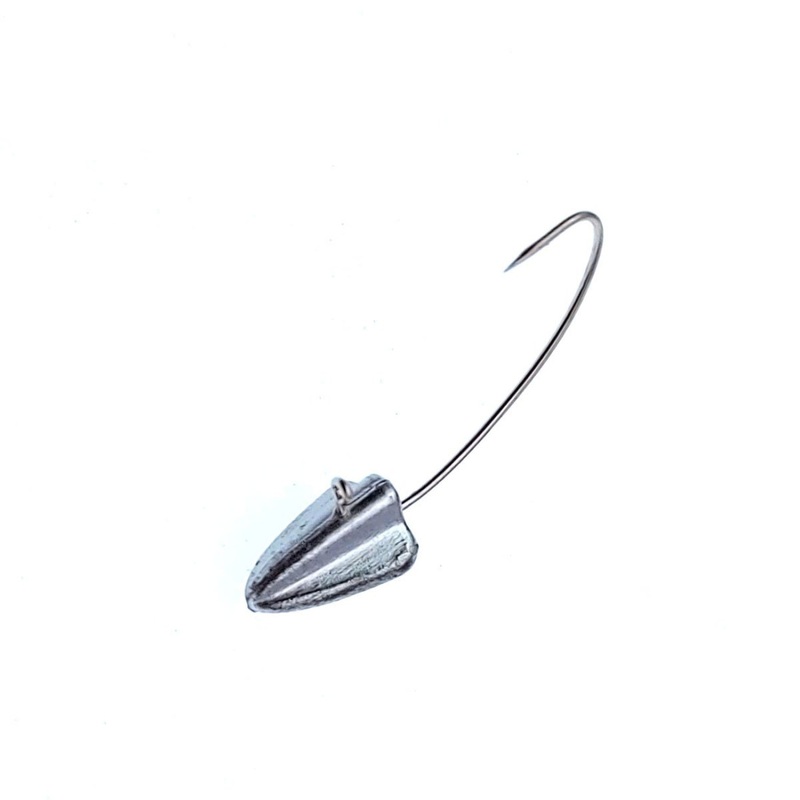The Driver jig heads are original, in the sense that the hook has a very short shank. The short shank makes it possible for the silicones operating area to expand and its action to change. The short shank leaves the longest part of the worm exposed. This widens the movement and increases the appeal of the lure.