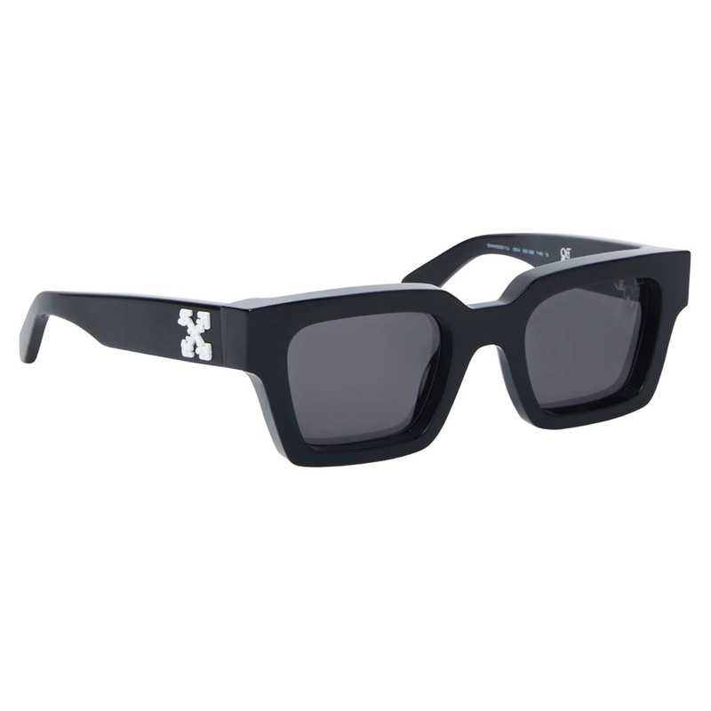 DESCRIPTION The OFF-WHITE VIRGIL sunglasses, model OERI008 1007, deliver a sleek fusion of classic style and modern attitude. Featuring a square silhouette, the frame is crafted from premium black acetate for a bold yet timeless look. Solid grey lenses pro
